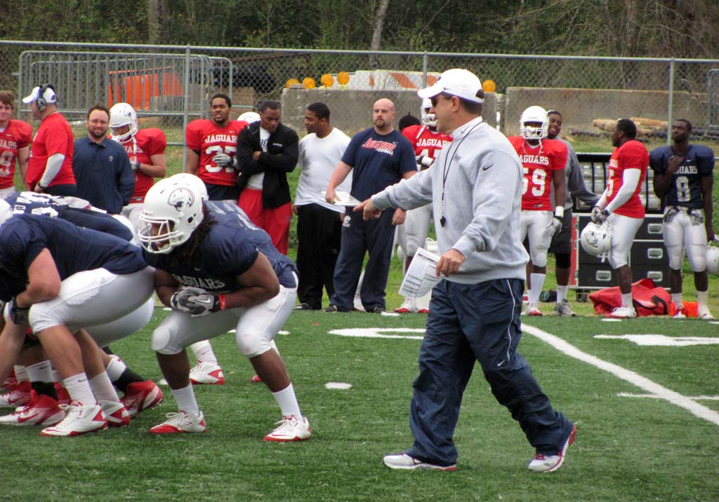 South Alabama began spring practice this morning as they gear up for their first season as a full FBS member in 2013. Though the Jags are coming off a 2-11 season and have questions going forward, there is an excitement and eagerness to meet the challenge head on.