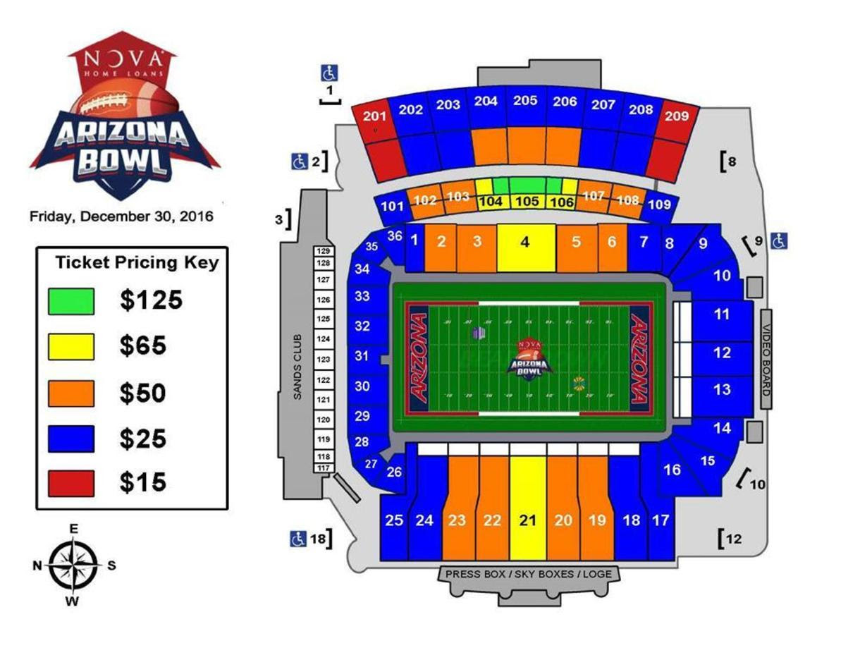 South Alabama has been allotted tickets within Section(s) 19-23 and 25-29 of Arizona Stadium. Prices range from $25-$65. Seating chart below.